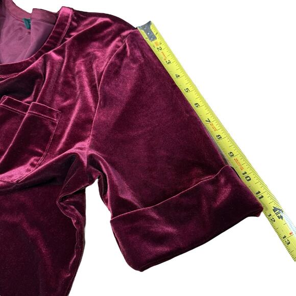 RALPH LAUREN L Women Burgundy Stretch Velvet Velour Pullover S/S Pocket Top