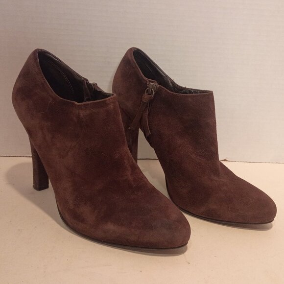 RALPH LAUREN LRL "Janae" Sz 8M Dark Brown Suede 4" High Heel Booties