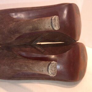 Dark chocolate brown suede make these gorgeous RALPH LAUREN LRL 4" high heel booties absolutely delicious! The "Janae" in women's size 8 medium, have almond toes and stiletto heels with an inside zip or easy on and off. These are in near-new condition, with hardly any wear at all, and really none showing. Please see photos.