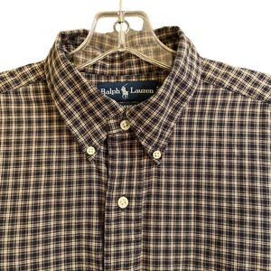 RALPH LAUREN MENS BLUE/BEIGE PLAID CLASSIC FIT COTTON LONG SLEEVE SHIRT SZ LARGE