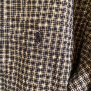 RALPH LAUREN MENS BLUE/BEIGE PLAID CLASSIC FIT COTTON LONG SLEEVE SHIRT SZ LARGE