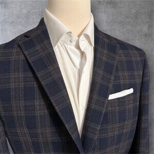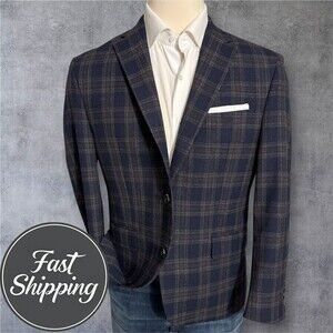 RALPH LAUREN Men's 42S Wool Windowpane Navy Blazer Sport Coat Two Button Jacket