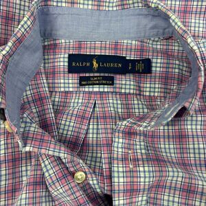 RALPH LAUREN Men’s Pink and Blue Plaid Slim Fit Button Down Sz S
