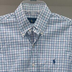 RALPH LAUREN Men's Small Classic Button Down Oxford Shirt Blue Label Pink/Blue