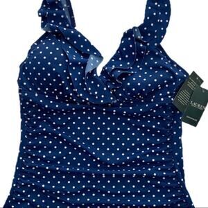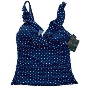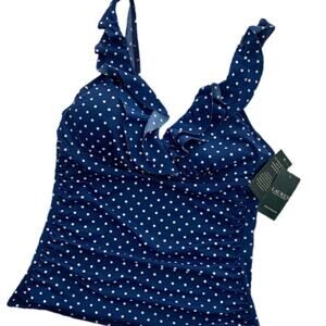 RALPH LAUREN NWT Blue Polka Dot Tankini Swim TOP – Size 12