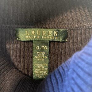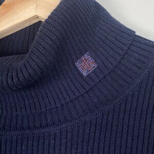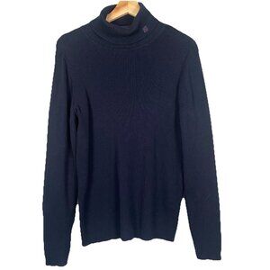RALPH LAUREN Navy Blue Thick Knit Cotton Monogram Turtleneck Sweater Size XL