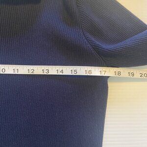 Crafted with a tight-knit weave for durability, this long-sleeved pullover features a roll neck design that offers both warmth and a touch of sophistication. The sweater's XL size provides a classic fit that's both flattering and comfortable. With its rich navy hue and subtle brand monogram, it's a piece that embodies designer quality and effortless style, perfect for the fall, spring, or winter seasons.