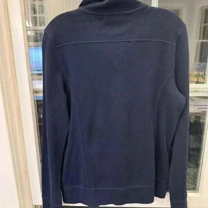 RALPH LAUREN Navy Cotton Snap-Neck Knit Sweater Front Pockets SZ M