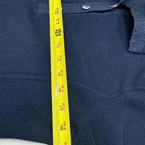 Excellent condition. The sweater is navy blue with silver snaps. It has a kangaroo pocket in front. See photos for measurements