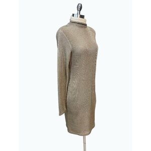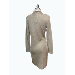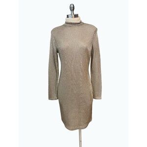RALPH LAUREN Navy Label Designer Metallic Gold Turtleneck Cocktail Dress Large