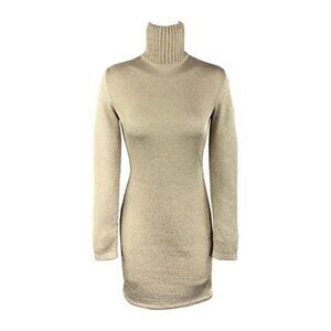 RALPH LAUREN Navy Label Designer Metallic Gold Knit Turtleneck Sweater Cocktail Dress