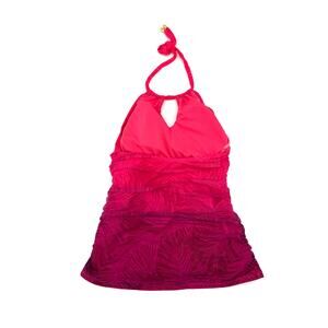 RALPH LAUREN Ombre Palm High Neck Halterkini Pink Swim Tankini Top 10 NEW