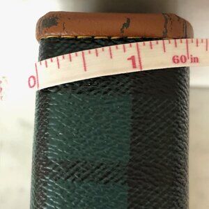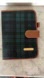 Black, green, blue Blackwatch Plaid with brown leather trim