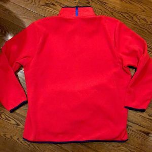 RALPH LAUREN POLO 1/4 Snap Collared Navy Trimmed Red Fleece with Zipper On Seam Hand Pockets