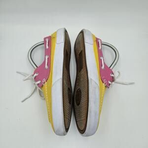 RALPH LAUREN POLO Shoes Women's Size 7.5 Canvas Deck Yellow Pink Slip On Casual