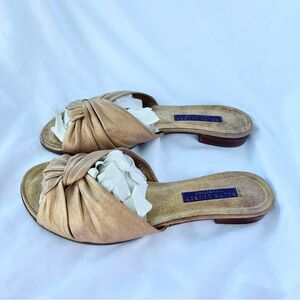 RALPH LAUREN PURPLE LABEL | KNOTTED GOLD LEATHER METALLIC SLIDE SANDAL SIZE 6.5