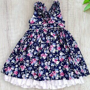 RALPH LAUREN Polo Navy Floral Ruffle Neckline White Trim Sleeveless Dress 6