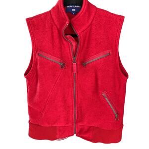 RALPH LAUREN Polo Sport women's bright red fleece vest zipper pockets size S