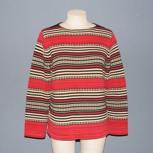 RALPH LAUREN Red Textured Jacquard Stripes Pullover Sweater sz M Petite