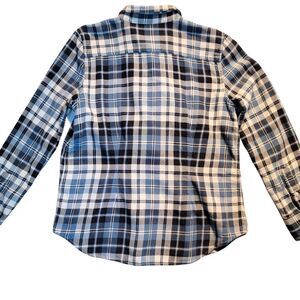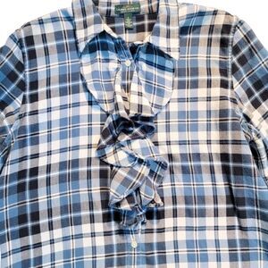 RALPH LAUREN Ruffle Front Plaid Button Up Flannel Shirt Womens L Derby Modest