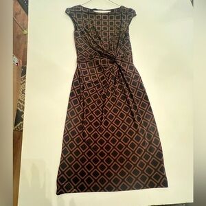 RALPH LAUREN SIZE 4 -BROWN AND BLACK GEOMETRIC DESIGN SLEEVELESS DRESS.