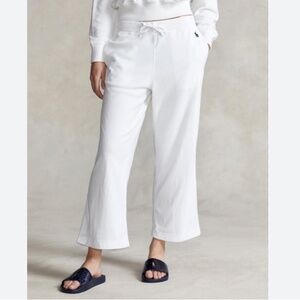 RALPH LAUREN SPORT WOMENS WHITE CROPPED ANKLE SWEATPANTS TERRY LINED LARGE