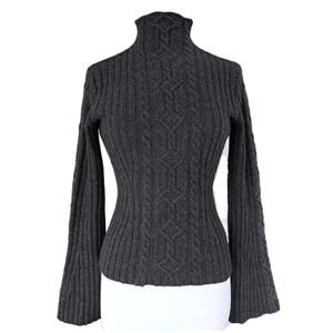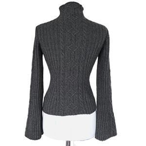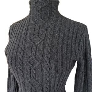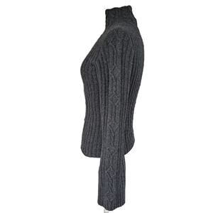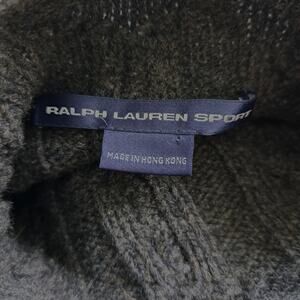 RALPH LAUREN SPORT Wool Cashmere Mock Neck Cable Knit Sweater Charcoal Gray