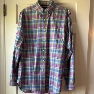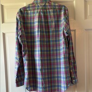 RALPH LAUREN SPRING MULTICOLOR PLAID COTTON SIZE LARGE COTTON PINK BLUE PREPPY BUTTON DOWN