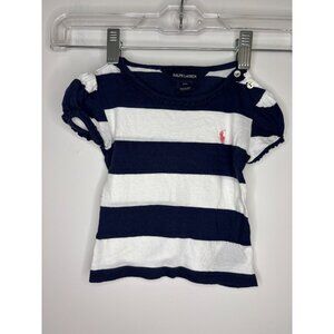 RALPH LAUREN Short Sleeve Striped Tee Girls 12Mths Blue White Pink Pony Ruffle