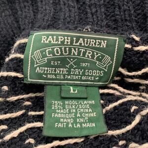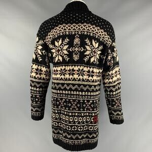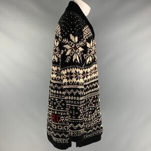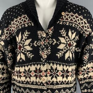 RALPH LAUREN Size L Black Cream Wool Silk Snowflake Cardigan