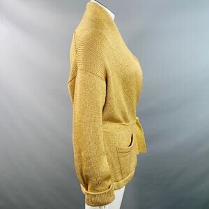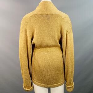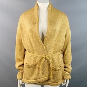 RALPH LAUREN Size L Gold Metallic Knit Belted Cardigan