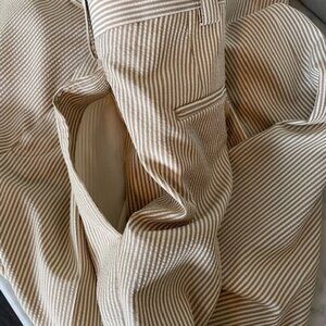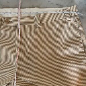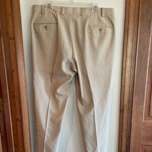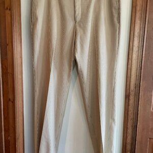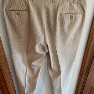 RALPH LAUREN Tan White Seersucker Flat Front Trousers 36x30