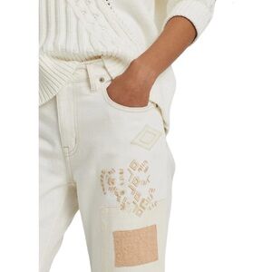 RALPH LAUREN Tapered Patchwork Beaded Mid Rise Relaxed Jeans Size 16 NEW $195
