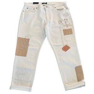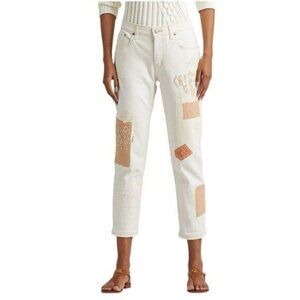 RALPH LAUREN Tapered Patchwork Beaded Mid Rise Relaxed Jeans Size 16 NEW $195