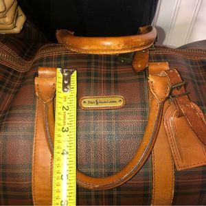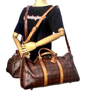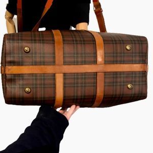 RALPH LAUREN Brown Watch Tartan Plaid Boston Travel Duffle Bag with Original Leather Shoulder Strap
