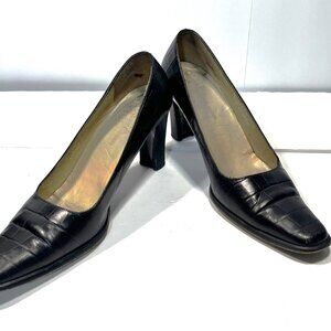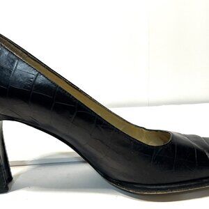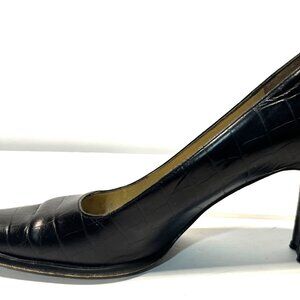 RALPH LAUREN Vintage Black Leather Embossed Croc Heels Made in Spain 7-1/2B EU38