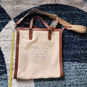 RALPH LAUREN Vintage Cream Canvas and Leather Tote Satchel Bag