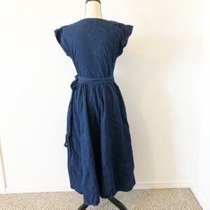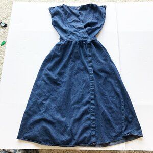 Ralph Lauren vintage denim maxi wrap dress. Blue, waist tie, v neck, short sleeve, 2 pockets, size 8, 100% cotton, some spots where fabric is worn/snagged-see photos. Smoke and pet free home.