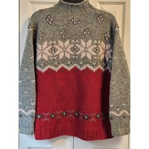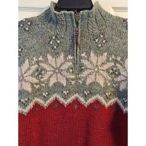 RALPH LAUREN Vintage Handknit Wool Quarter Zip Nordic Snowflake Winter Sweater S