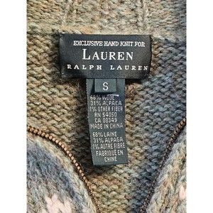 Stay cozy this winter in this beautiful vintage Ralph Lauren sweater. Crafted with a blend of alpaca and wool, this chunky-knit fair isle sweater features a quarter zip and beautiful snowflake design. The sweater is dry clean only and has a regular fit. It is a size small.