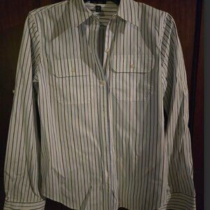 RALPH LAUREN White with Blue Stripes Button Down Blouse SIZE S
