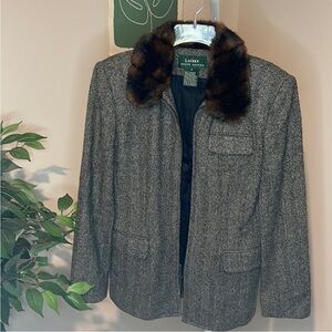 RALPH LAUREN Woman's Silk and Wool blend coat with faux fur collar size 4