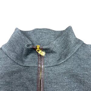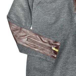 * STYLE- Will look great with boots or heels. Curve appeal. Effortless pull-on with front gold half zip. Detailed with gold zippers on sleeves. Smooth 100% lamb leather elbow patches and trim down front. Supportive, stretchy, and comfortable. Long sleeve. Mock neckline. Typically falls just above/around the knee.
