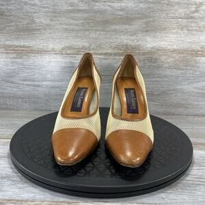 RALPH LAUREN Women’s Purple Label Mesh Brown Leather Pumps Size 8 Made in Italy