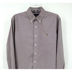 RALPH LAUREN long sleeve button up shirt check gingham 100% cotton stretch L
