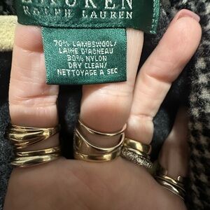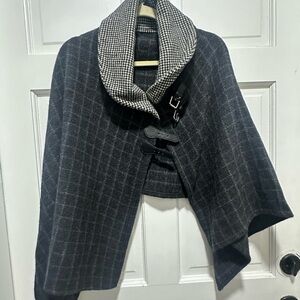Chic wool blend cape by Ralph Lauren. Features a stylish plaid pattern. Ideal for layering.