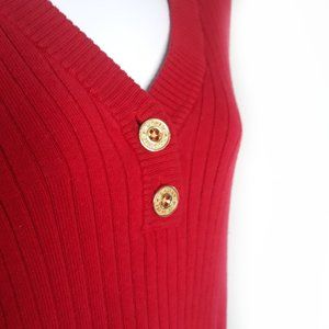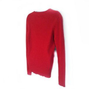 RALPH LAUREN • women's Medium red ribbed sweater v-neck Valentine's casual