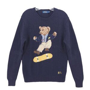RALPH LAUREN x Palace Sweater Skate Polo Bear Skateboarding Blue SMALL
