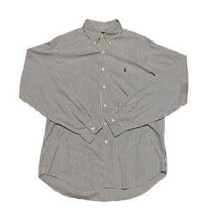 RALPH Lauren Classic Fit Blue and White Stripe Button Up Long Sleeve sz 16 1/2