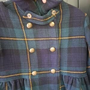 RALPH Lauren Green, Blue and Yellow Wool Pea Coat Size 16